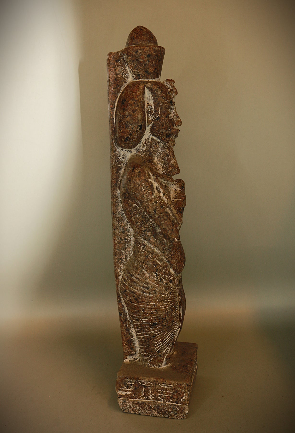 Refers to a variety of metamorphic stones widely used by the ancient Egyptians from 3100 to 30 BC. This stone is characterized by its layered composition, which facilitates its shaping and carving. Schist is composed of minerals such as mica, chlorite, and talc, giving it a lustrous sheen and a smooth surface. These qualities made it a valuable material for fine sculptures, ritual objects, and funerary items. The ancient Egyptians preferred schist for its ability to support intricate carvings, making it a prime material for temple statues, stelae, and tomb artifacts, which often held religious significance.